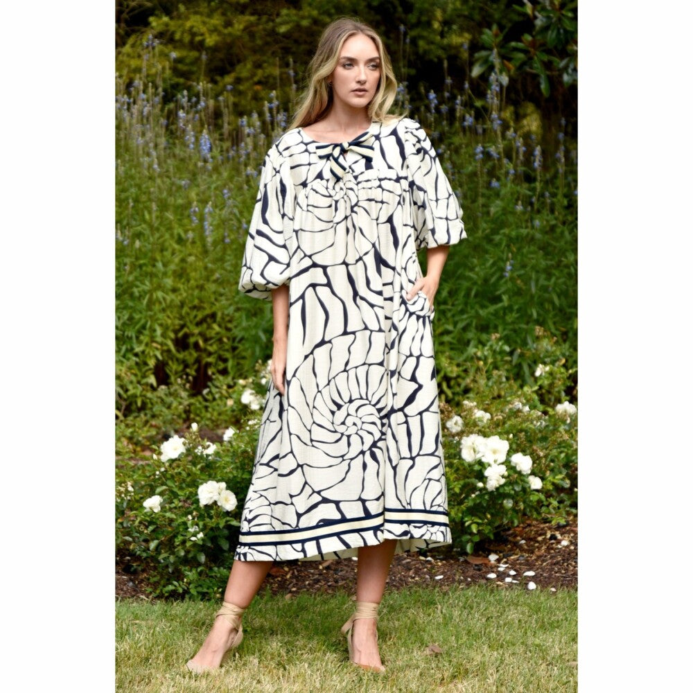 A dress to serve you all spring long with comfort and style. Crafted in the soft hand-feel ‘Front Lines’ viscose, rayon fabric, the ‘Style in Excess’ dress delivers a relaxed fit through the body with gathering at the front and back falling from the yoke. Full, bagged sleeves that are gathered to perfection add drama to this everyday dress which will serve in any wardrobe!
