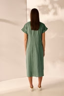 Discover the charm of the Marlo Dress, a beautifully tailored linen piece designed with a shaped waist seam and intricate panelling for a flattering silhouette. Delicate ladder lace inserts on the bodice and fine stitch detailing on the skirt create a refined hem band, while the turned cuff on the dropped shoulder adds a relaxed, contemporary touch.